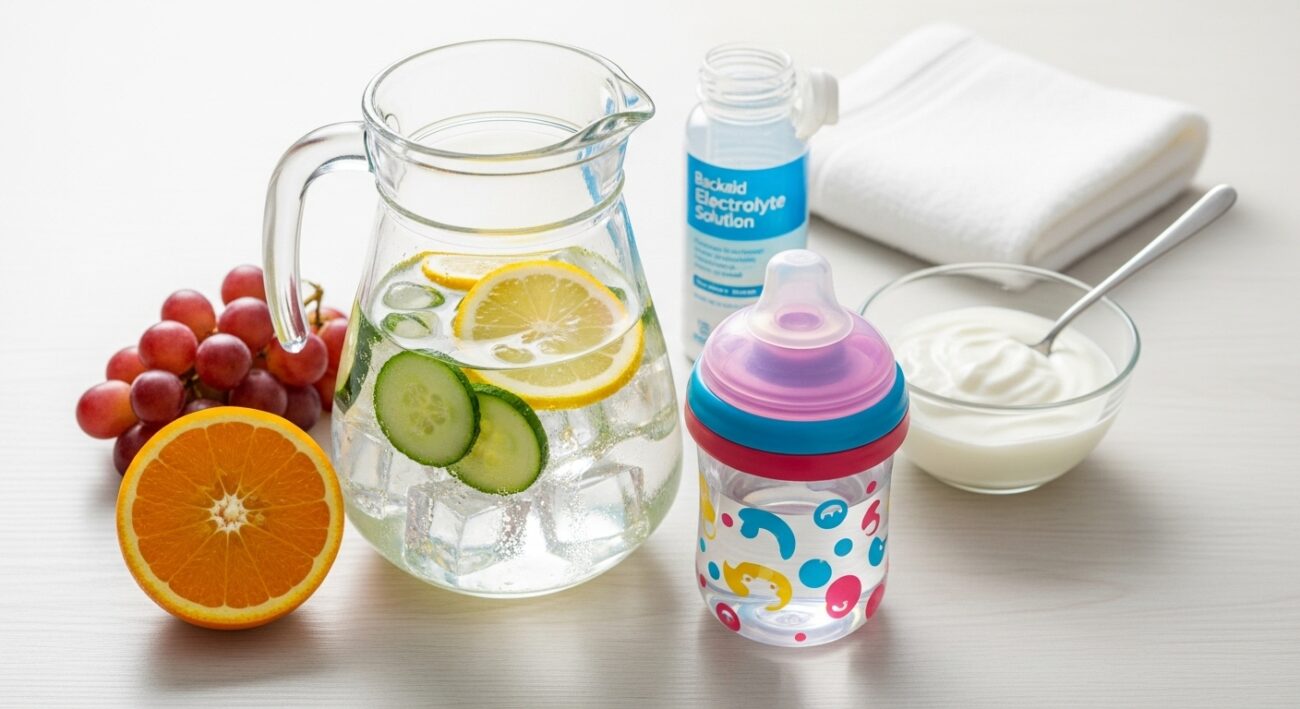 - Zwiększ podaż płynów: Regularnie oferuj dziecku wodę, niesłodzone herbatki, a w razie potrzeby elektrolity.