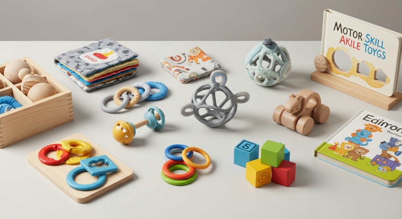- Wieże do układania i zabawki do nawlekania: Rozwijają zręczność, koncentrację i precyzyjne ruchy.