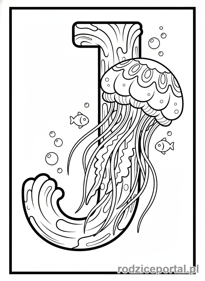 Pobierz darmowe kolorowanki Kolorowanka Alfabet Literka J I Meduza. Idealne dla dzieci do druku.