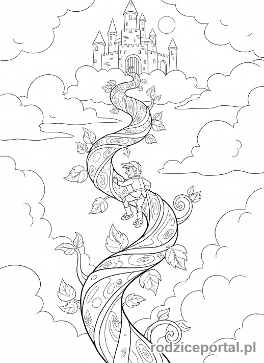 Pobierz darmowe kolorowanki Kolorowanka Bajkowe Sceny Jaś I Magiczna Fasola. Idealne dla dzieci do druku.
