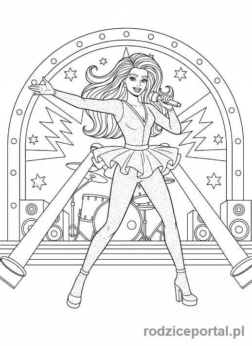 ⬇️ PobierzKolorowanka Barbie – Barbie jako piosenkarka na scenie.