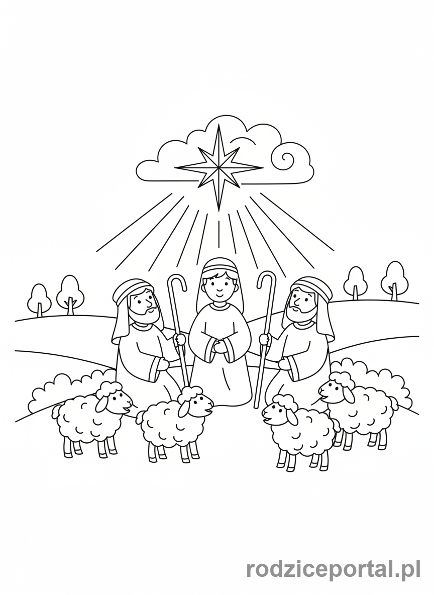 Pobierz darmowe kolorowanki Kolorowanka Boże Narodzenie Pasterze Z Owieczkami. Idealne dla dzieci do druku.
