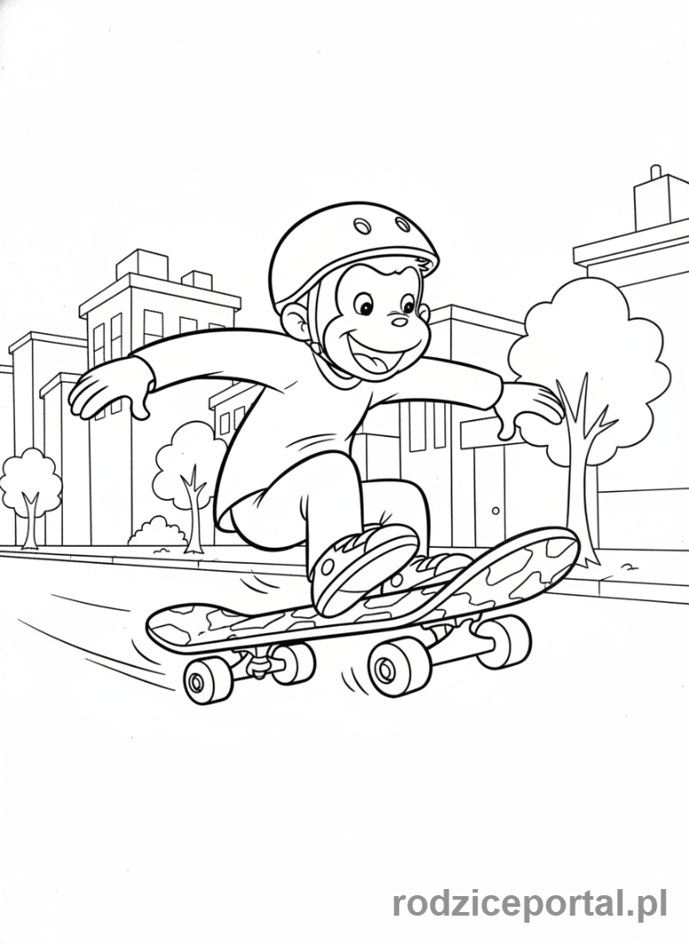 Pobierz darmowe kolorowanki Kolorowanka Ciekawski George Ciekawski George Na Deskorolce. Idealne dla dzieci do druku.