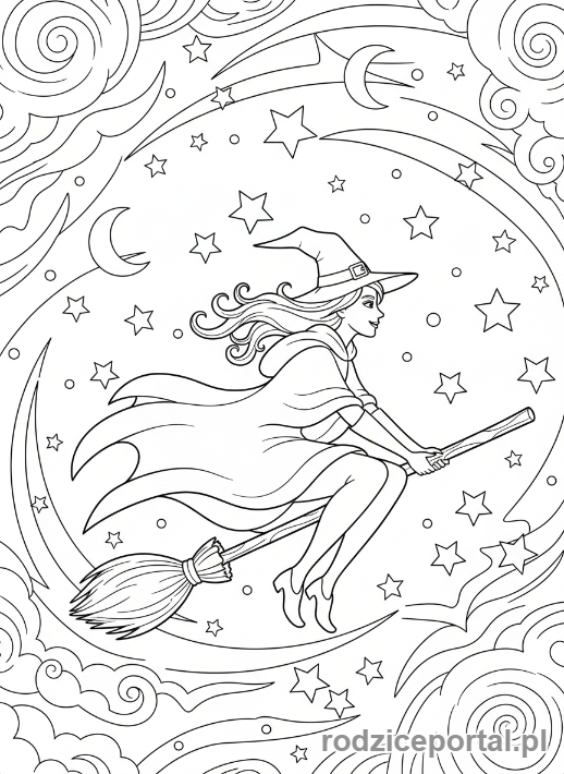 Pobierz darmowe kolorowanki Kolorowanka Czarownica Czarownica Na Miotle. Idealne dla dzieci do druku.