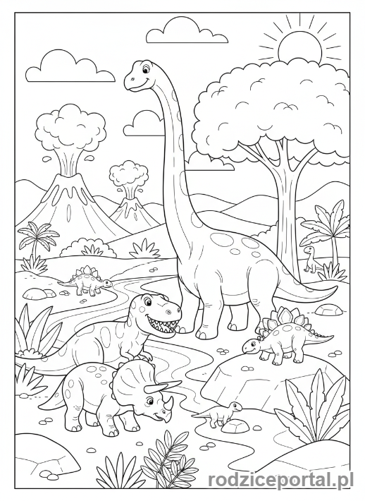 Pobierz darmowe kolorowanki Kolorowanka Dinozaury Park Pełen Dinozaurów.. Idealne dla dzieci do druku.