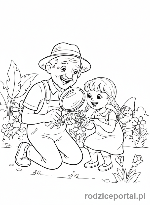Pobierz darmowe kolorowanki Kolorowanka Dzień Dziadka Dziadek Z Lupą Badający Owady Z Wnuczką.. Idealne dla dzieci do druku.