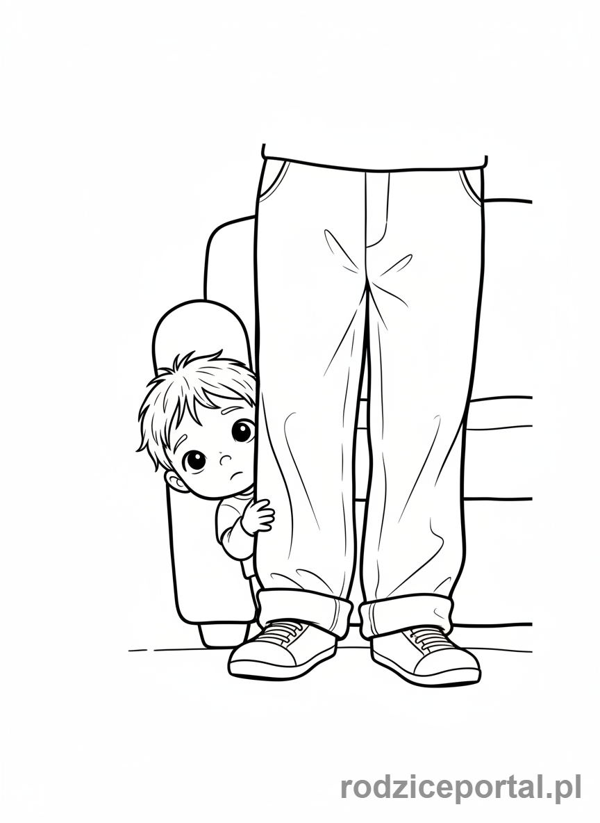 Pobierz darmowe kolorowanki Kolorowanka Emocjonalne Nieśmiałe Dziecko Za Nogą. Idealne dla dzieci do druku.