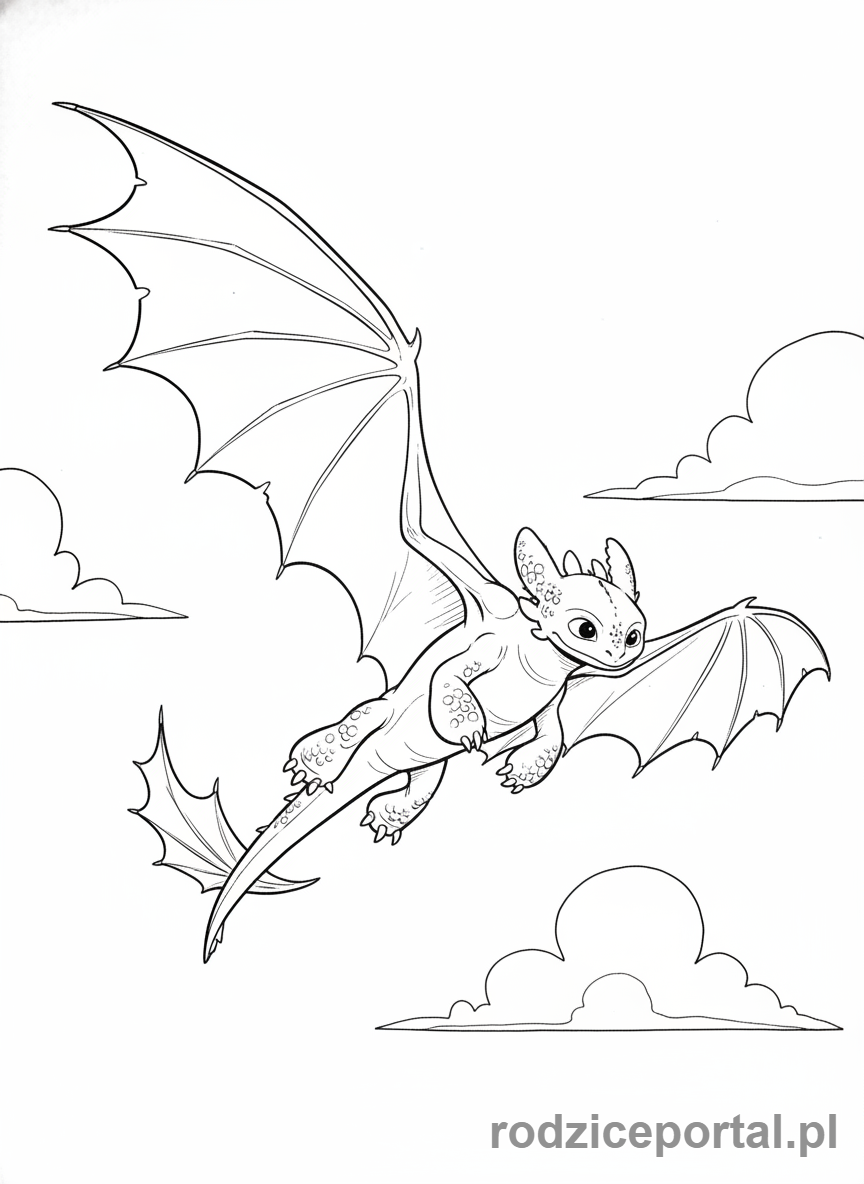 Kolorowanka Jak Wytresować Smoka – Szczerbatek w locie z dołu