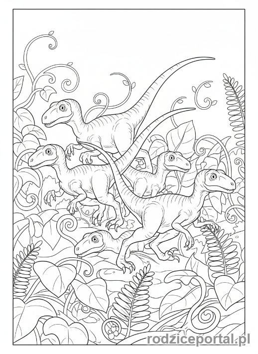 ⬇️ PobierzKolorowanka Jurassic World – Kompsognaty polujące w grupie