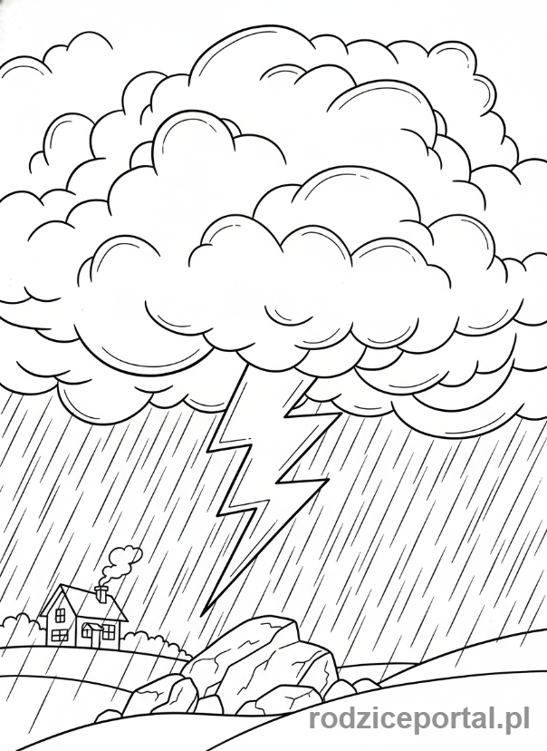 ⬇️ PobierzKolorowanka Kalendarz Pogody – Burza z piorunami i ulewny deszcz.