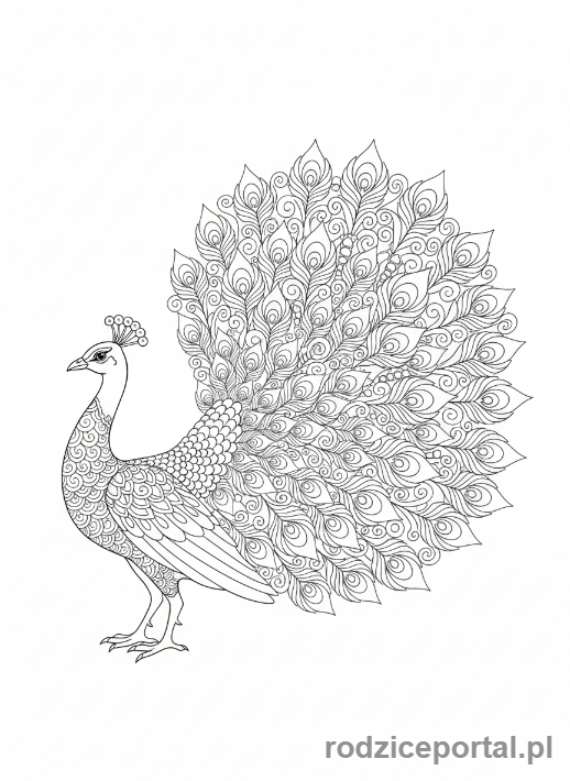 Kolorowanka Kolorowanki Dla Dorosłych - Paw z bogato zdobionymi piórami