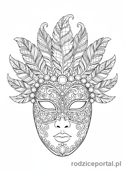 Kolorowanka Kolorowanki Dla Dorosłych - Wenecka maska z ornamentami