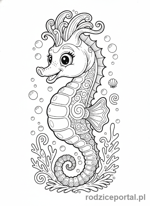 ⬇️ PobierzKolorowanka Konik Morski – Fantazyjny konik morski