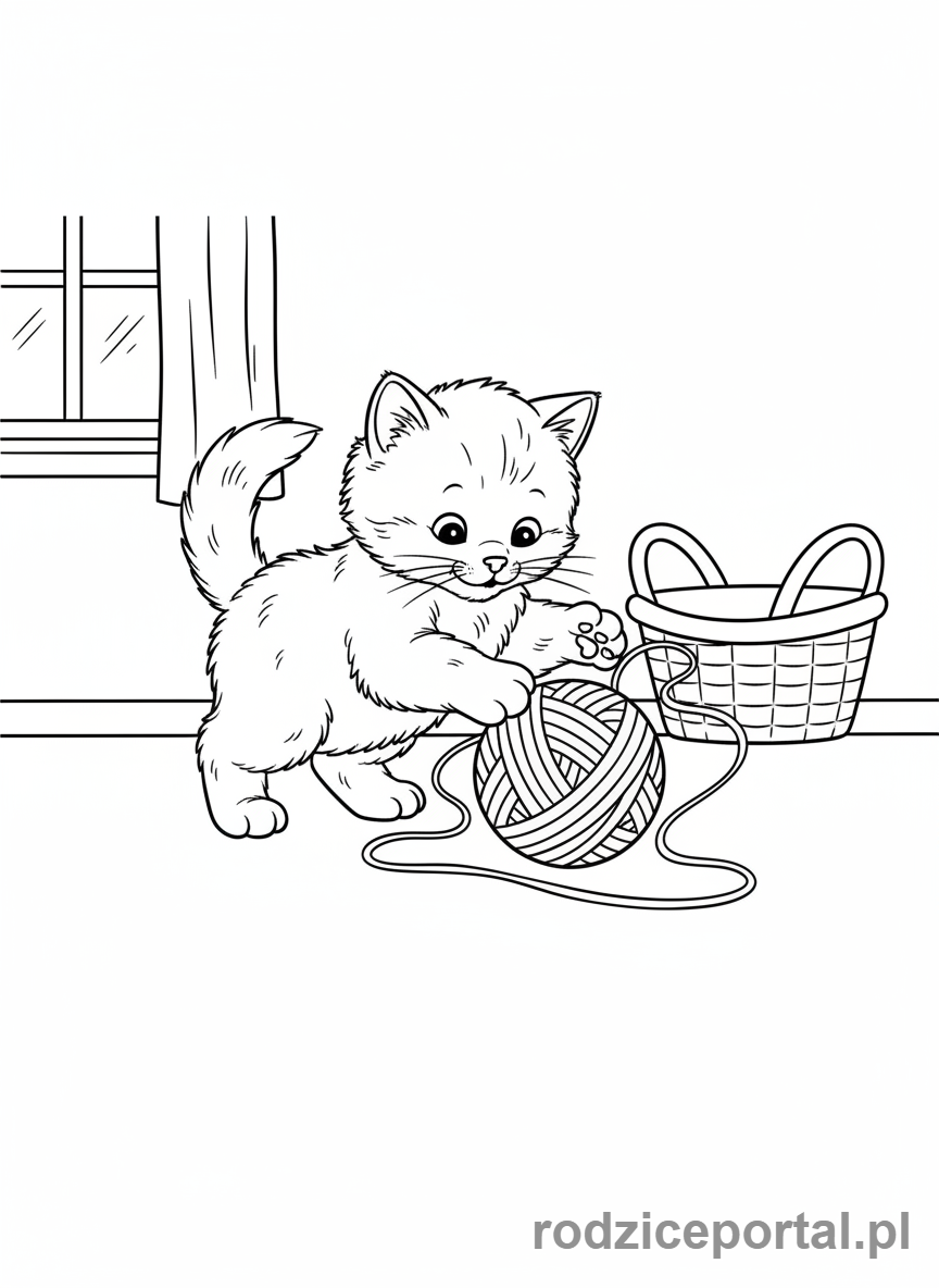 ⬇️ PobierzKolorowanka Kotki – Uroczy kotek bawiący się kłębkiem wełny