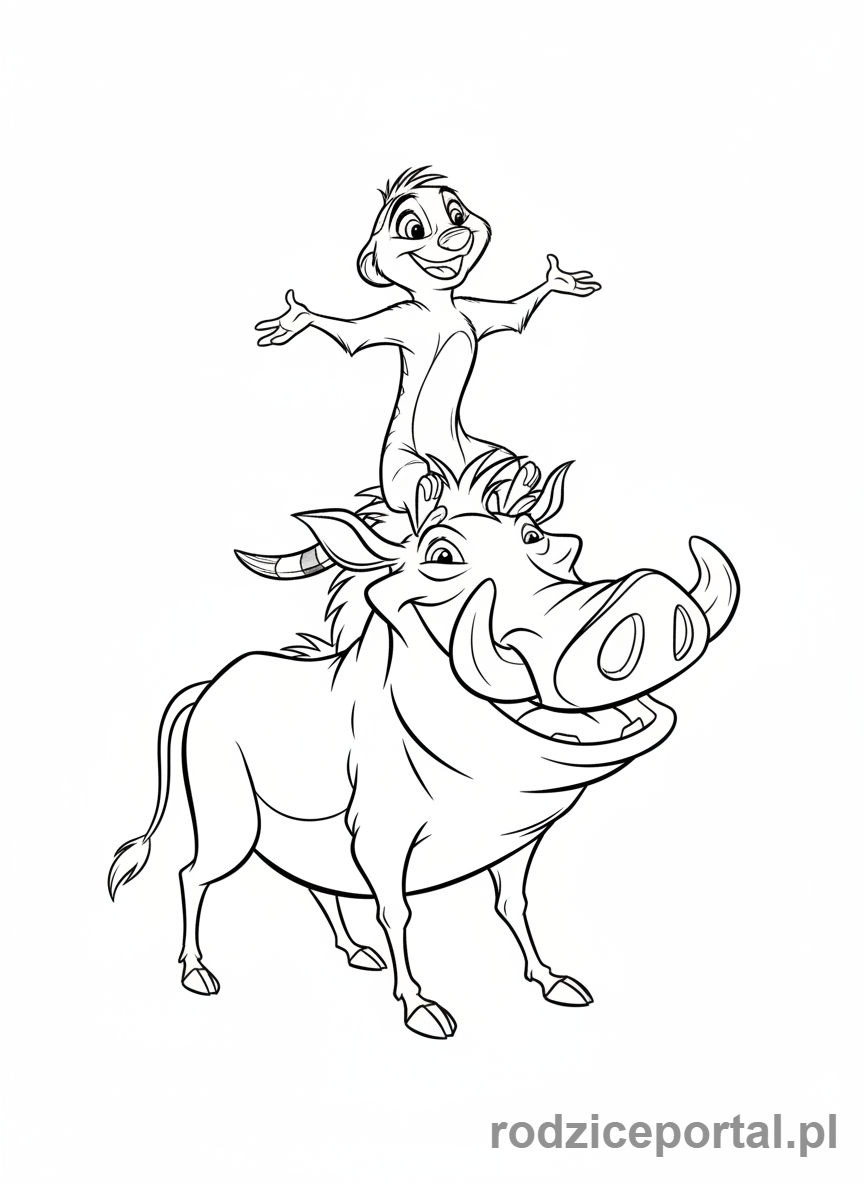 ⬇️ PobierzKolorowanka Król Lew – Timon siedzący na głowie Pumby