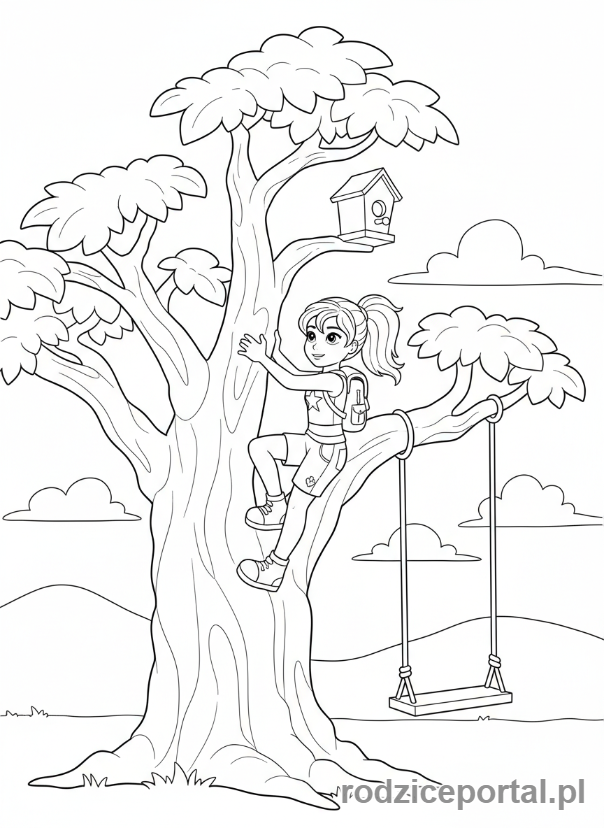 ⬇️ PobierzKolorowanka Lego Friends – Mia wspinająca się na drzewo.
