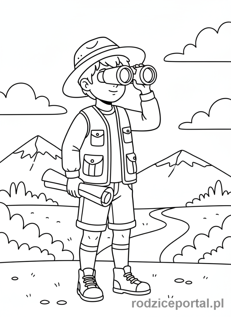 ⬇️ PobierzKolorowanka Nauka Orientacji – Dziecko z lornetką i mapą