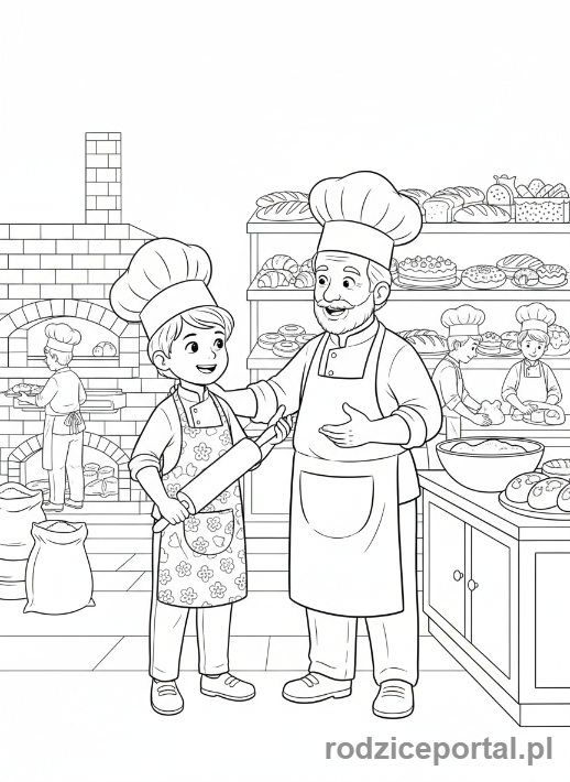 ⬇️ PobierzKolorowanka Piekarz – Młody piekarz uczeń