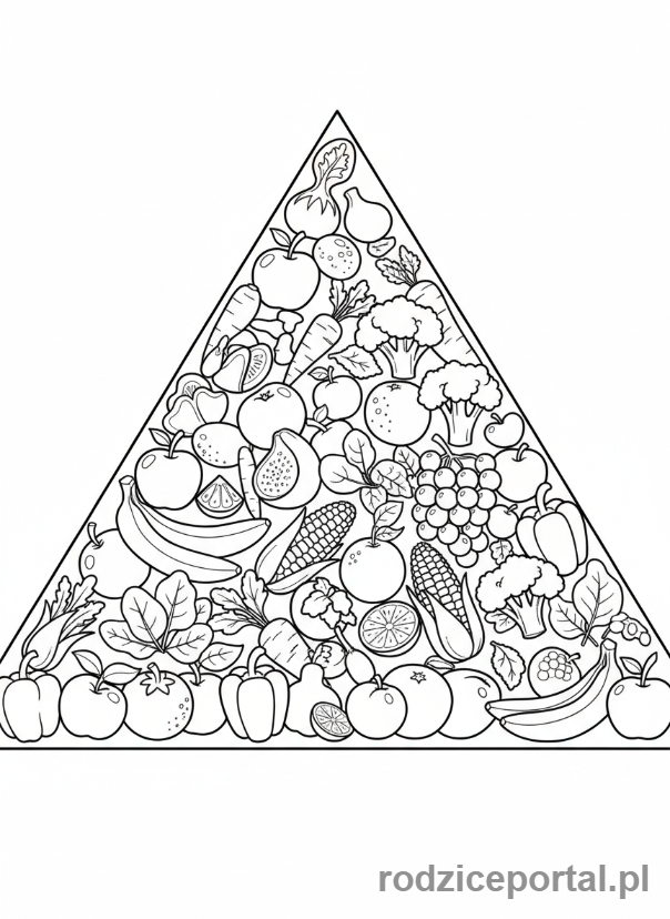 Kolorowanka Piramida Żywienia – Podstawa piramidy: owoce i warzywa