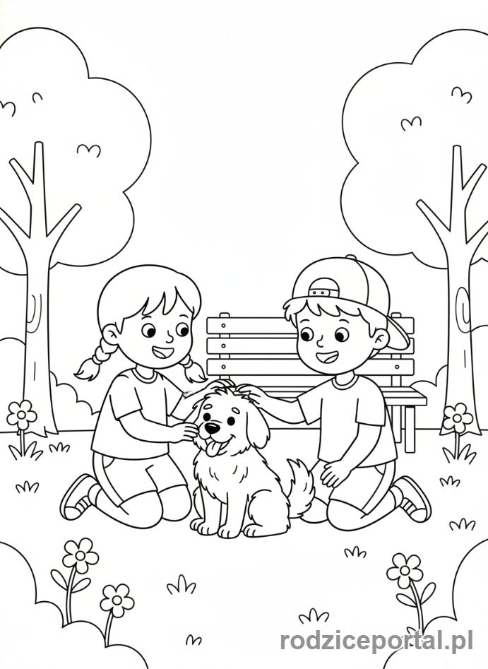 ⬇️ PobierzKolorowanka Przyjaźń – Dzieci z psem