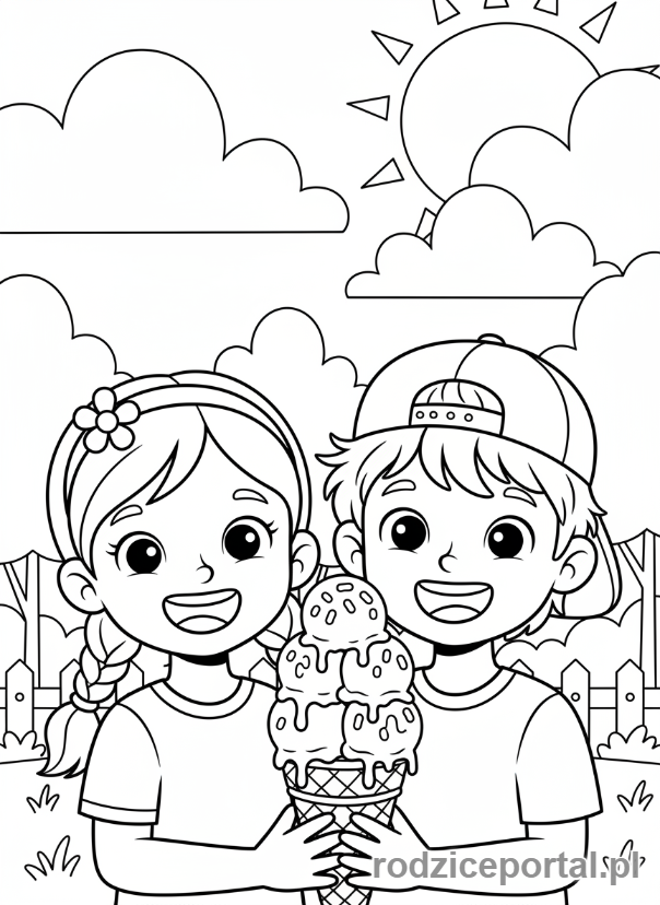 Pobierz darmowe kolorowanki Kolorowanka Przyjaźń Przyjaciele Dzielący Się Lodami. Idealne dla dzieci do druku.