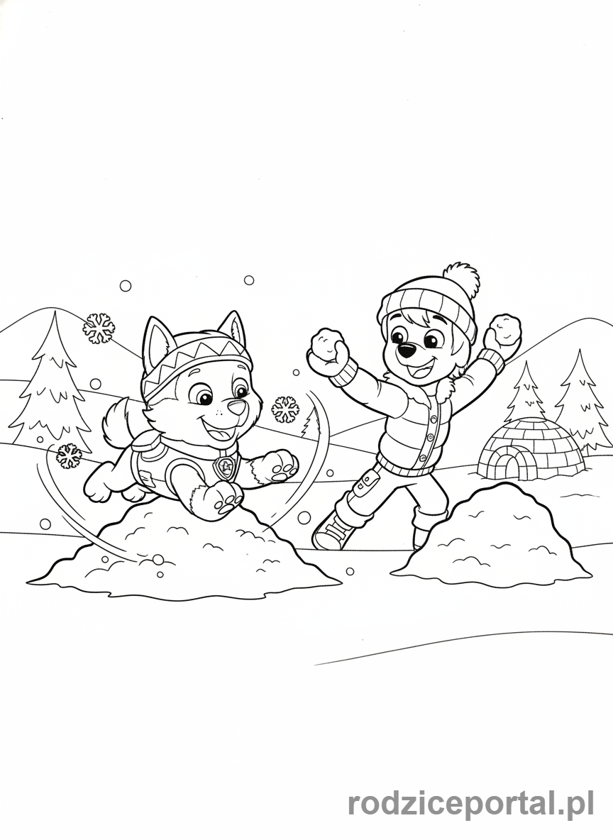 ⬇️ PobierzKolorowanka Psi Patrol – Everest bawiąca się na śniegu z Jakem