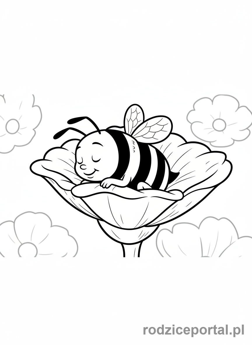 ⬇️ PobierzKolorowanka Pszczółka Maja – Gucio pszczółka śpiący na kwiatku.