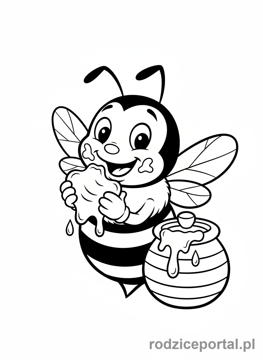⬇️ PobierzKolorowanka Pszczółka Maja – Gucio pszczółka zajadający miód.