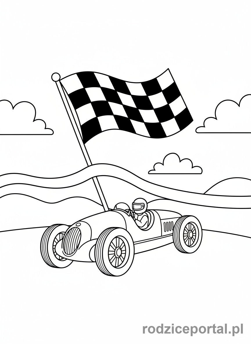 ⬇️ PobierzKolorowanka Samochody Wyścigowe – Klasyczny bolid wyścigowy na mecie.
