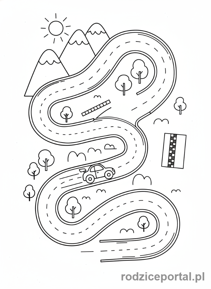 Pobierz darmowe kolorowanki Kolorowanka Samochody Wyścigowe Tor Wyścigowy Z Samochodem.. Idealne dla dzieci do druku.