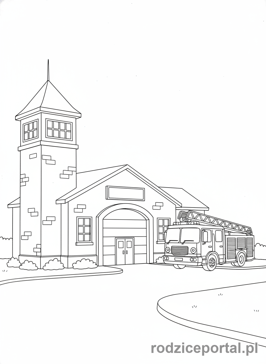 Pobierz darmowe kolorowanki Kolorowanka Strażak Sam Remiza Strażacka W Pontypandy. Idealne dla dzieci do druku.