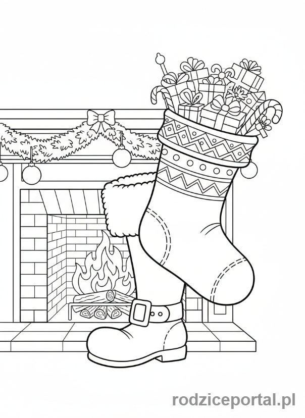 ⬇️ PobierzKolorowanka Święty Mikołaj – But Mikołaja i skarpeta
