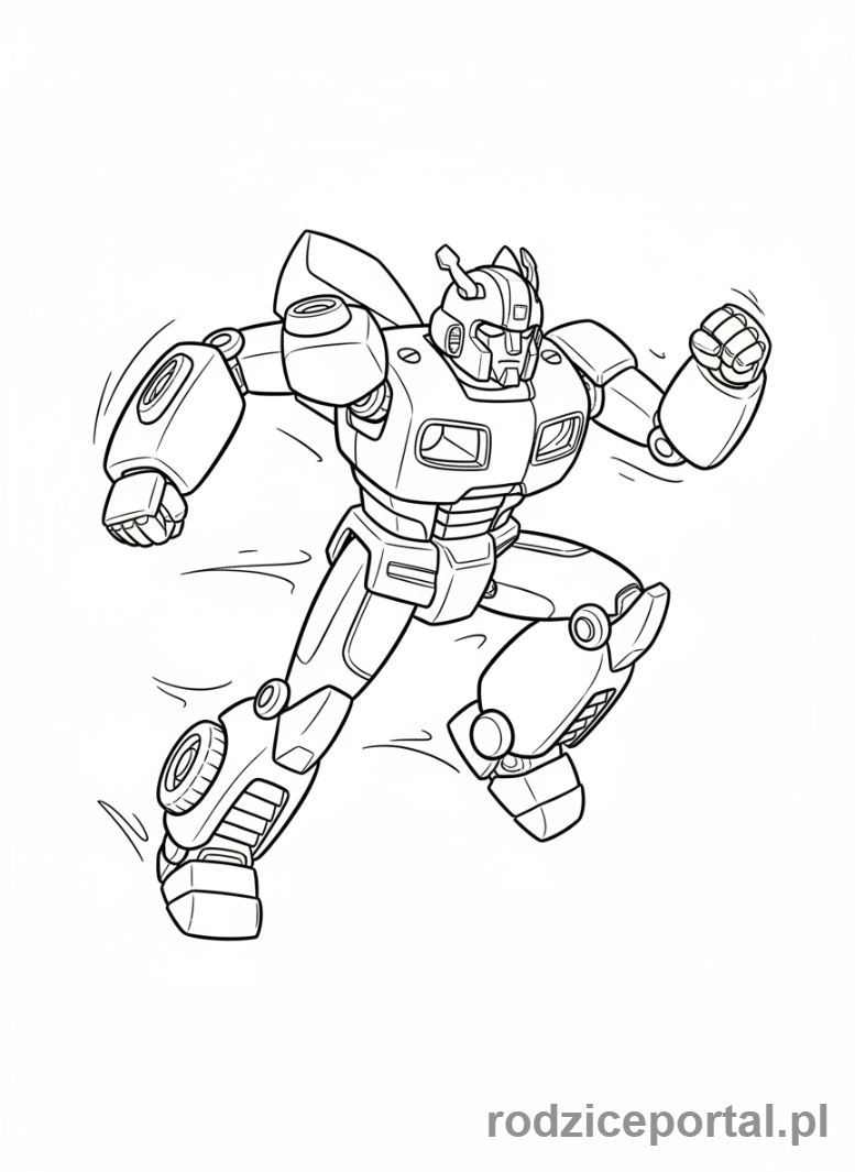 ⬇️ PobierzKolorowanka Transformers – Bumblebee biegnący dynamicznie, cała sylwetka