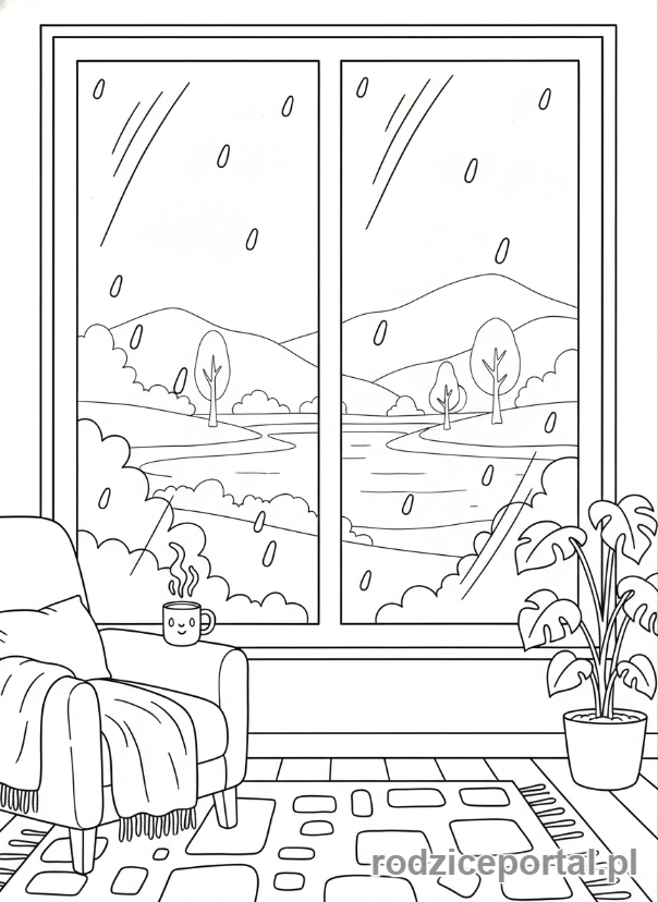⬇️ PobierzKolorowanka Uspokajające – Deszczowe okno