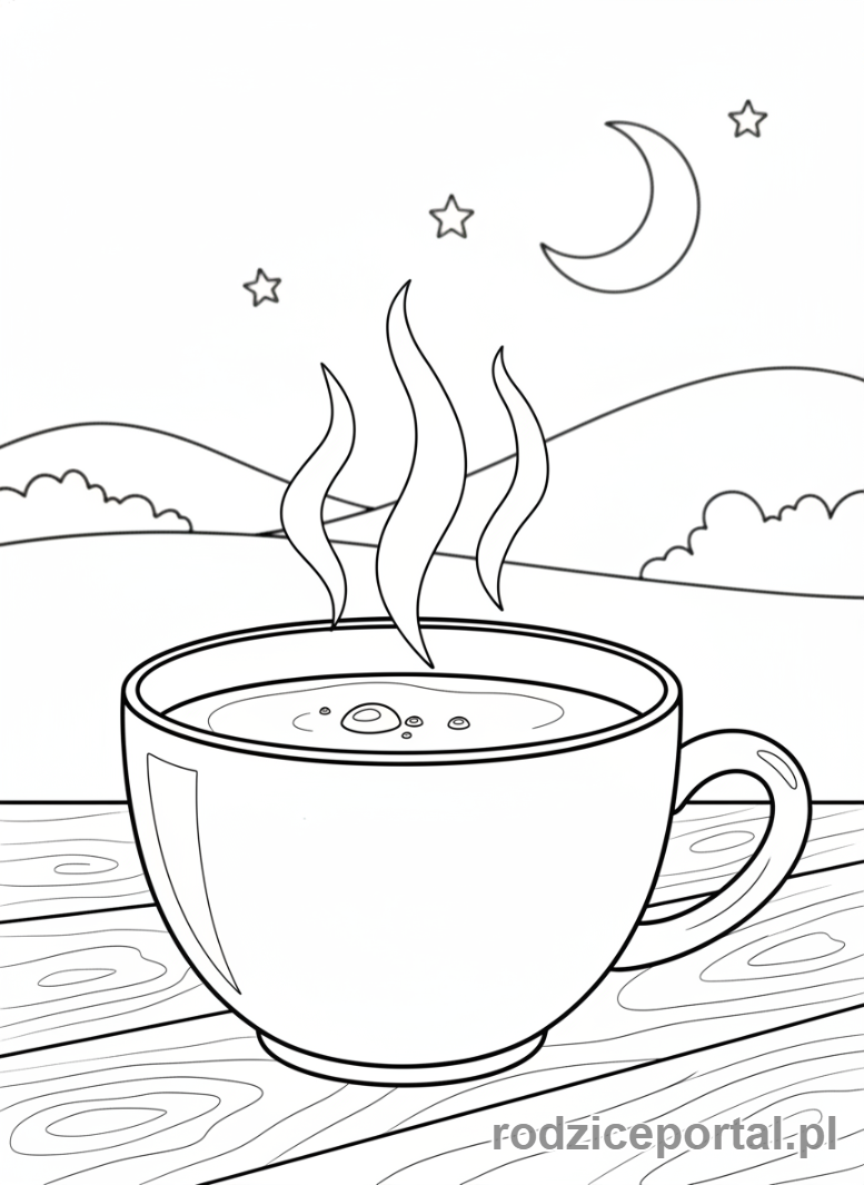 Pobierz darmowe kolorowanki Kolorowanka Wieczorne Wyciszenie Kubek Ciepłego Napoju. Idealne dla dzieci do druku.