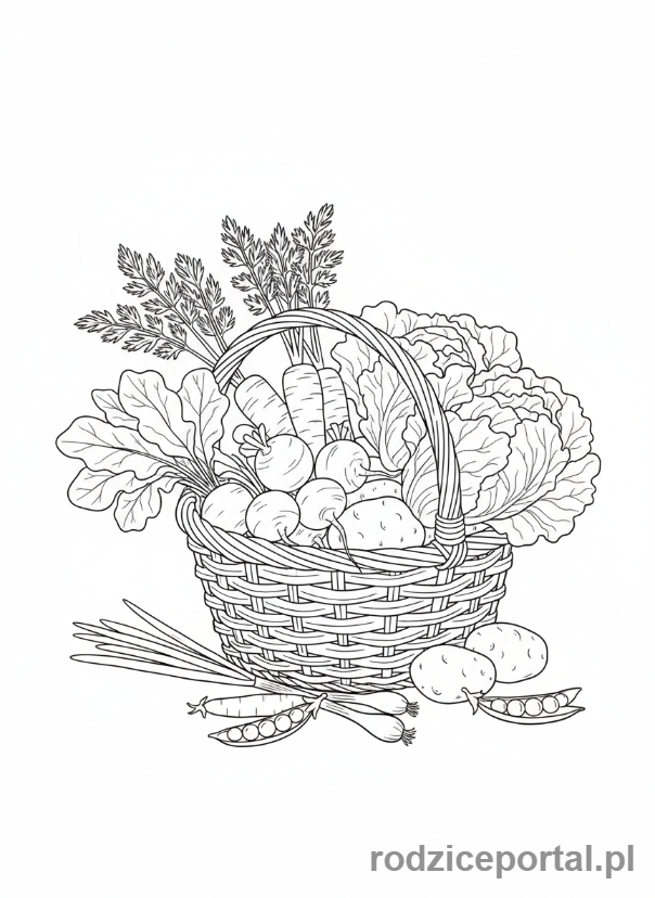 Pobierz darmowe kolorowanki Kolorowanka Wiosenne Kosz Z Warzywami. Idealne dla dzieci do druku.