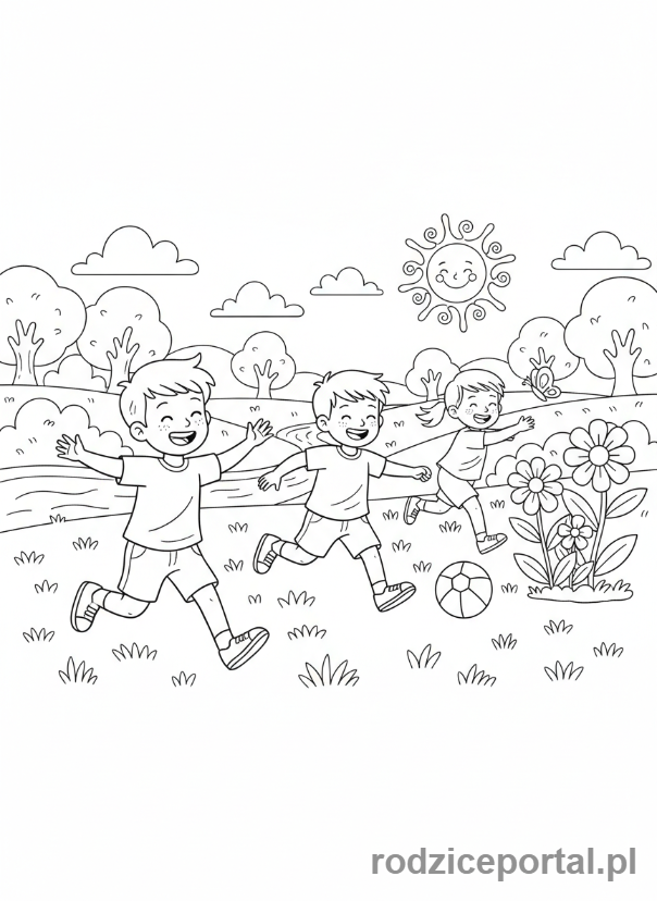⬇️ PobierzKolorowanka Zdrowie – Dzieci bawiące się na świeżym powietrzu