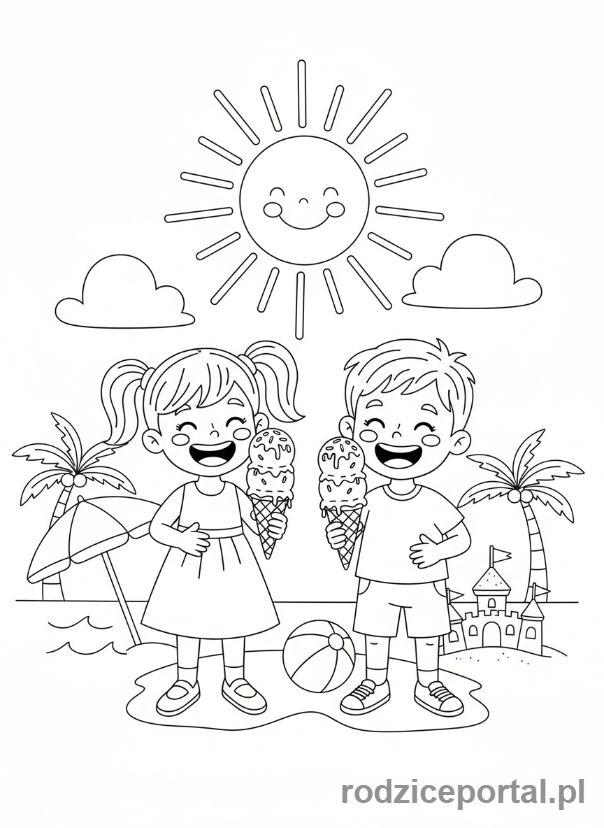 Kolorowanka Zmysły – Dzieci jedzą lody na słońcu