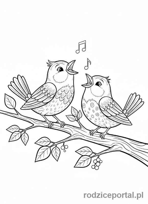 ⬇️ PobierzKolorowanka Zmysły – Ptaki śpiewające na gałęzi
